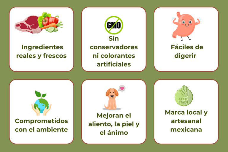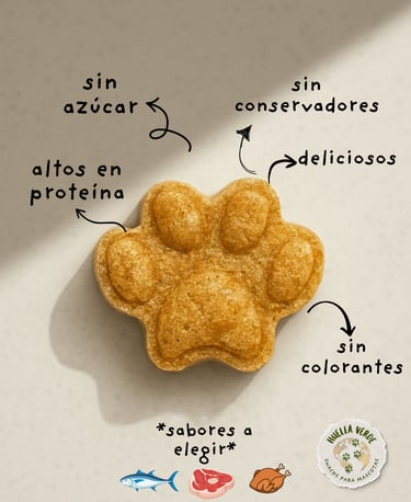Snacks naturales para consentir a tu perro o gato, sin químicos añadidos.